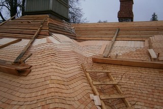 Изготавливается путём  ручного раскола деревянных колодок . Укладывается в 2-3 слоя .